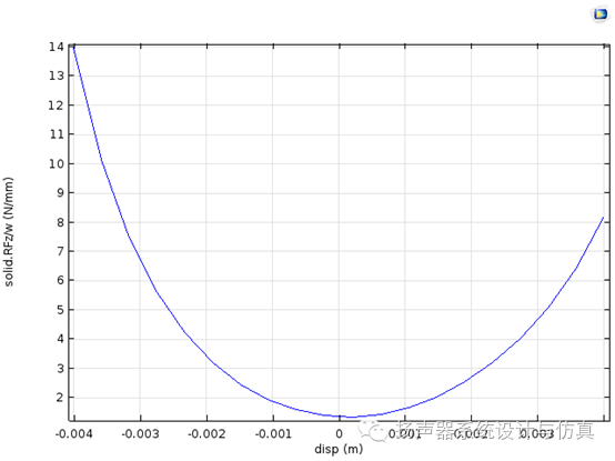 昨天一个朋友用comsol分析一款支片(弹波)的Kms(x)时,用最大位移5mm计算时,收到一个错误提示:“达到最大牛顿迭代次数”。只能计算到2mm。我花了点时间帮助他解决了一下。就以此为案例,解剖下麻雀。
