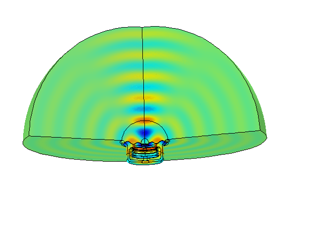 下面是一款环状高音20000Hz,声场声压分布的2d/3d动态示意图。