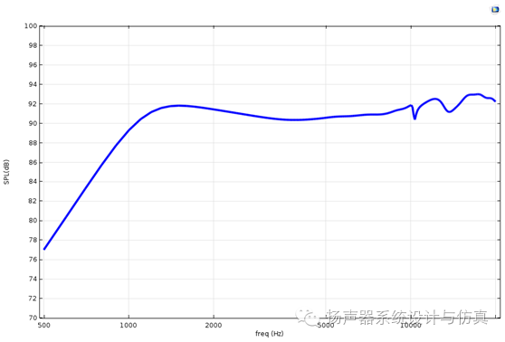 可以看到11kHz附近有个小的谷。事实上这个谷是仿真模型是磁隙中声场模型不符合实际情况造成。关于这个谷后续单独拿出来讨论。