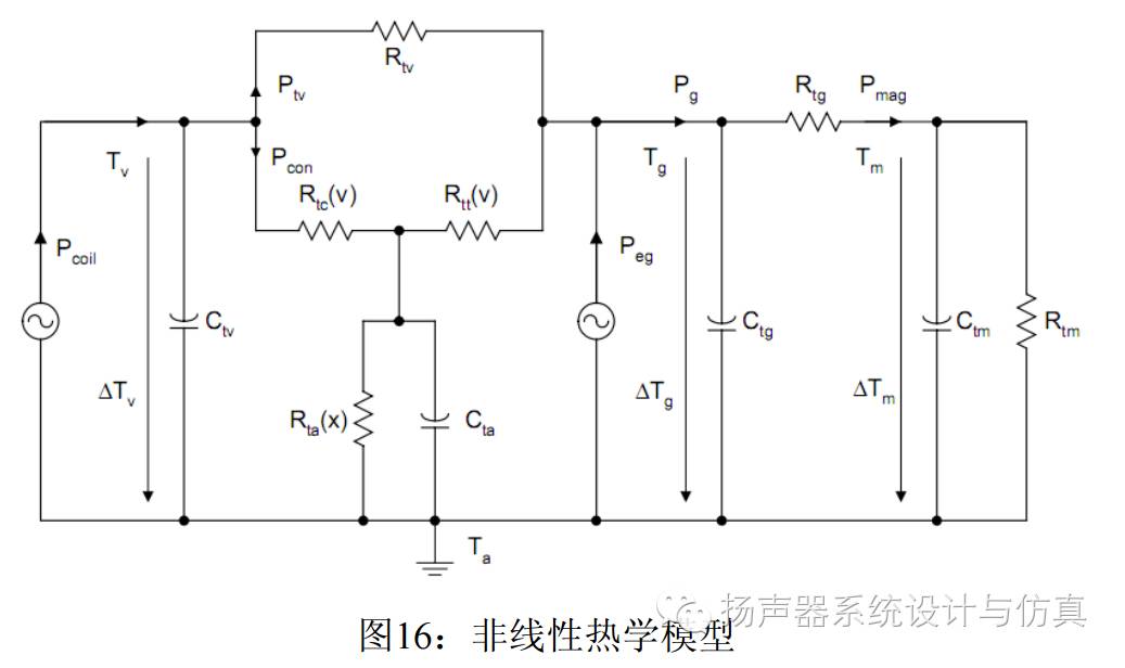 Klippel构建了一个扬声器的热等效电路模型,但必须得有样机实测才能拟合出参数,对初期研发的作用不是那么大。