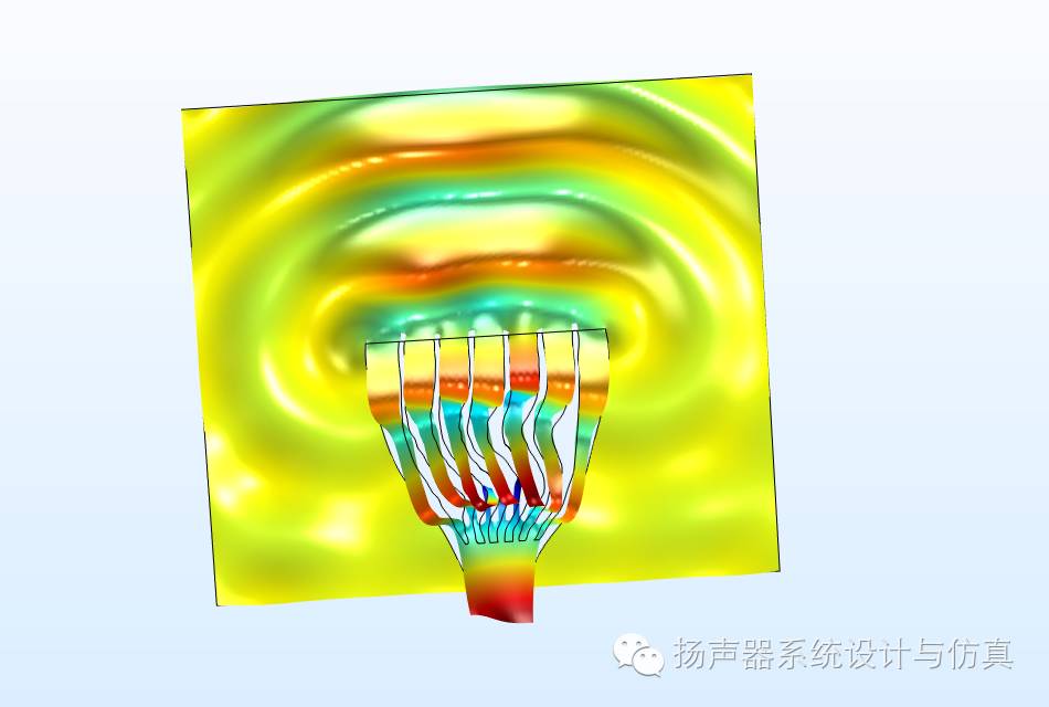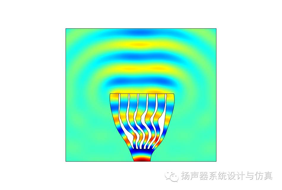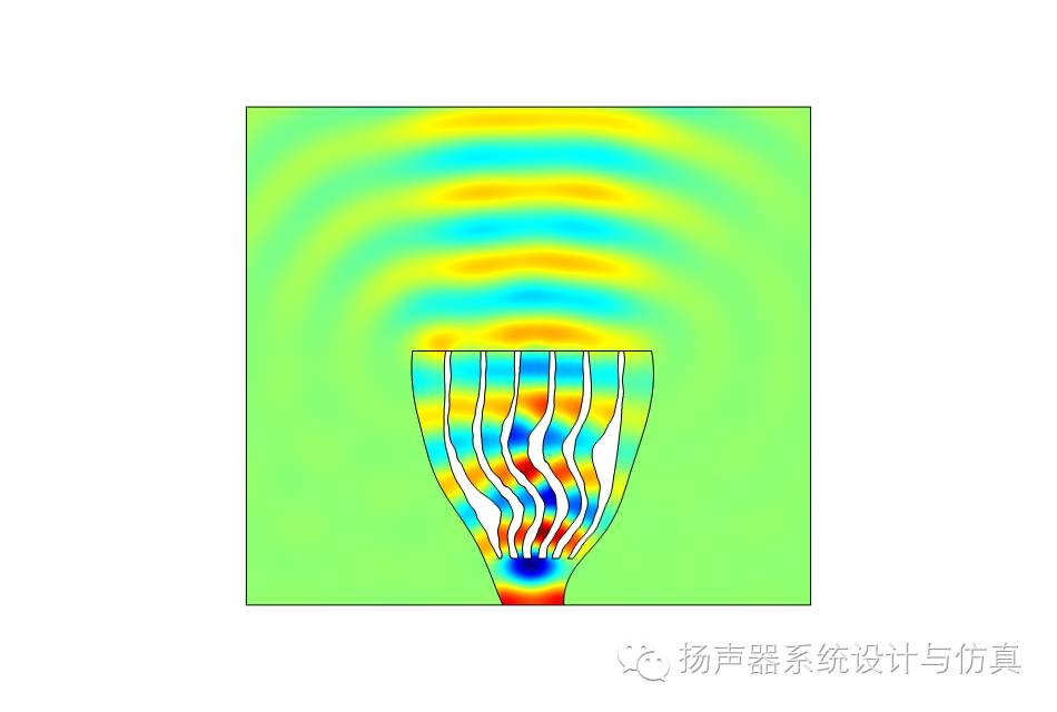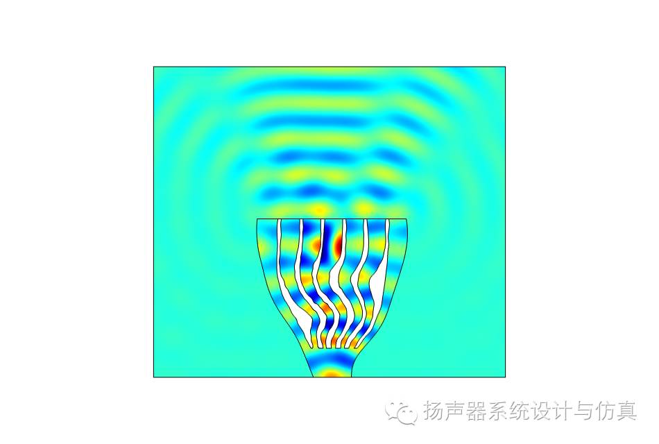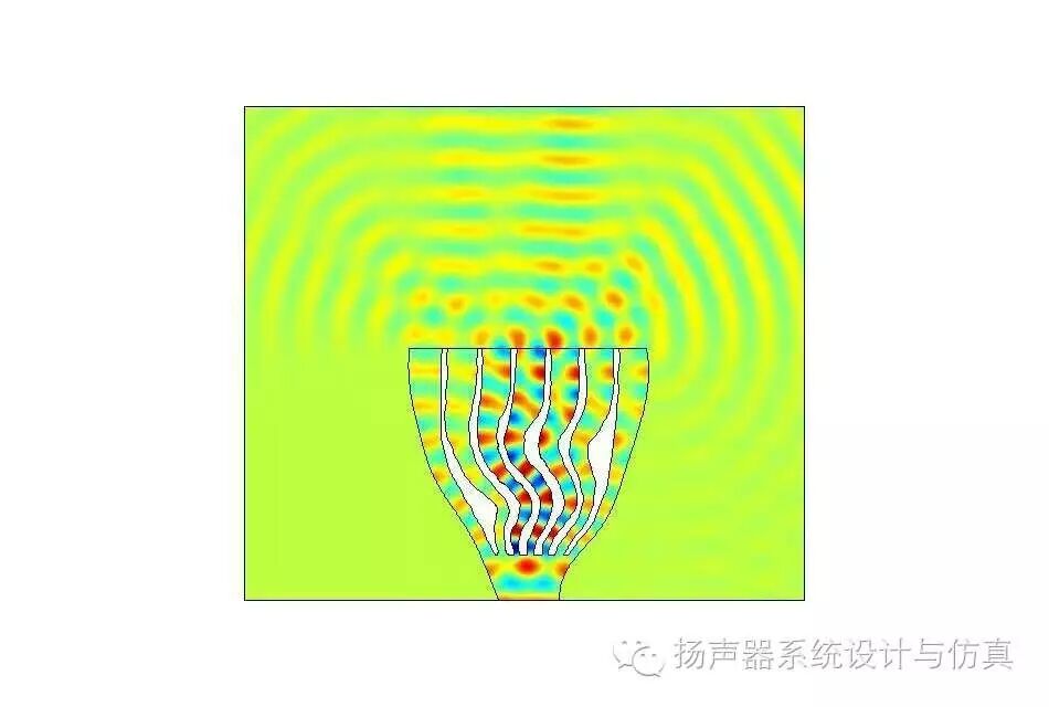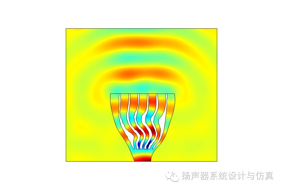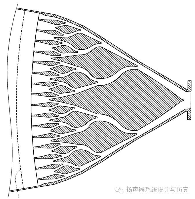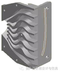波导管需要将压缩高音出来的声音,分成多个等声学路径一直到平面的出口。思路和压缩高音相位塞设计有类似的地方,相互之间也有耦合的联系。