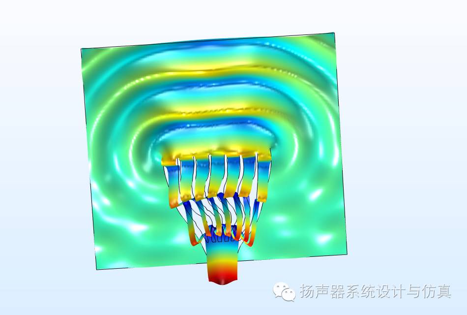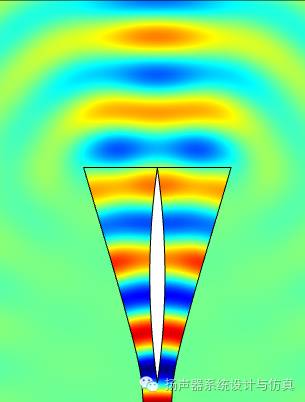 从仿真结果来看,这款实际产品的设计,波导管声学路径不完全相同,边缘两侧的路径会略长,声波传导略慢。还有优化的空间。