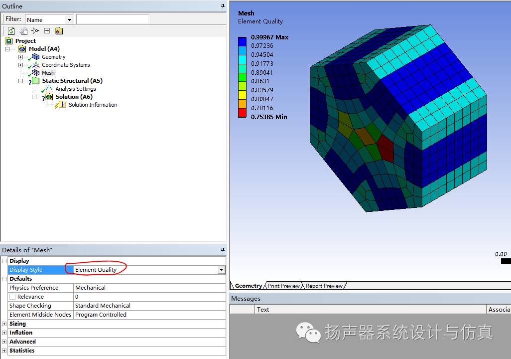 所选择的网格单元类型和判定准则会随设置发生变化。顺便说一句,目前Ansys Workbench可以通过插入命令流来进行修改底层网格单元,或者其他深层次的设定。Comsol好像压根没有供用户选择网格单元的余地。