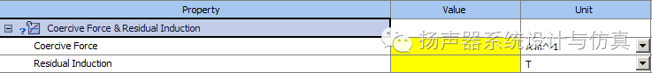 在磁场仿真中,对于线性磁铁的定义比较简单。输入剩余磁通密度Br,矫顽力Hc,相对磁导率μr这三个参数的其中2个即可。在扬声器使用来说,钕铁硼磁铁可以认为是线性磁铁,即退磁曲线线性,相对磁导率μr恒定。 可以自行对照自己使用的磁路仿真软件来设置。