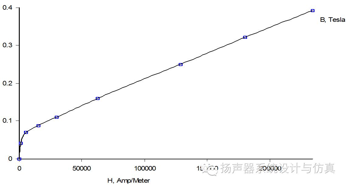 对于非线性磁铁,其退磁曲线非线性,相对磁导率μr不恒定,需要通过退磁曲线来定义。当然线性磁铁也可以通过退磁曲线来定义。对扬声器来说,非线性磁铁主要是铁氧体。