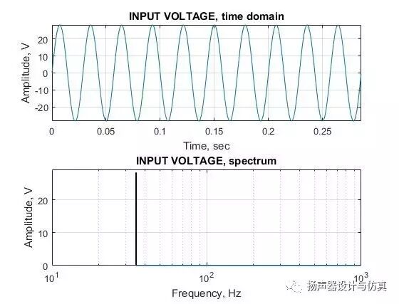 输入单频点正弦电压信号的时域和频域曲线