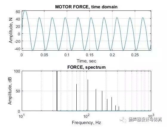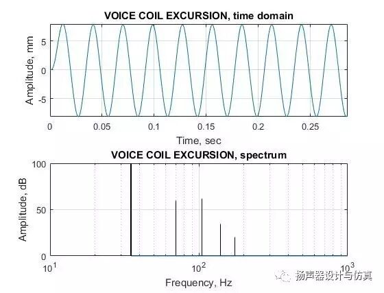 音圈位移的时域和频域曲线