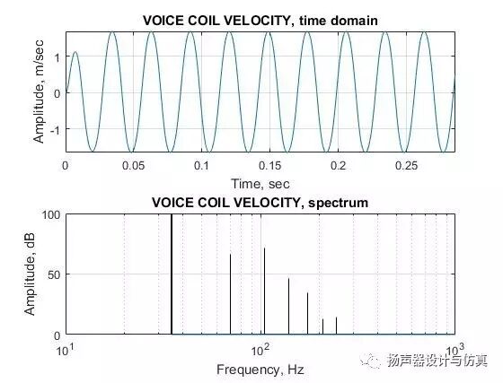 音圈速度的时域和频域曲线