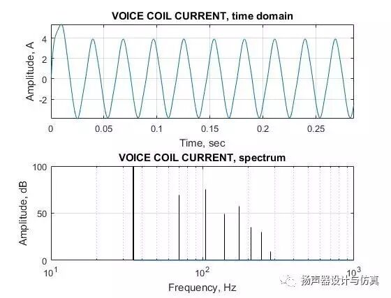 音圈电流的时域和频域曲线
