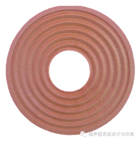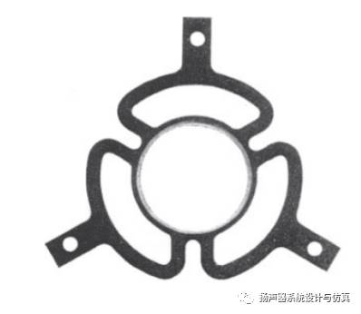 定芯支片(名称源自其作用,英文名称Spider),又称弹波(音译自Damper,译得很生动)。目前常用的是类似下图的,材料常用有棉,Nomex/Conex,混纺,蚕丝等等。也有特殊情况用橡胶等材料的。