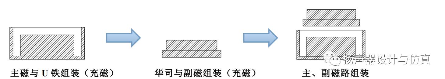 常规的工艺方法是先将华司与主磁组装,然后再与 U 铁组装并充磁,在将反磁单独充好磁后组装到主磁路的华司上方。