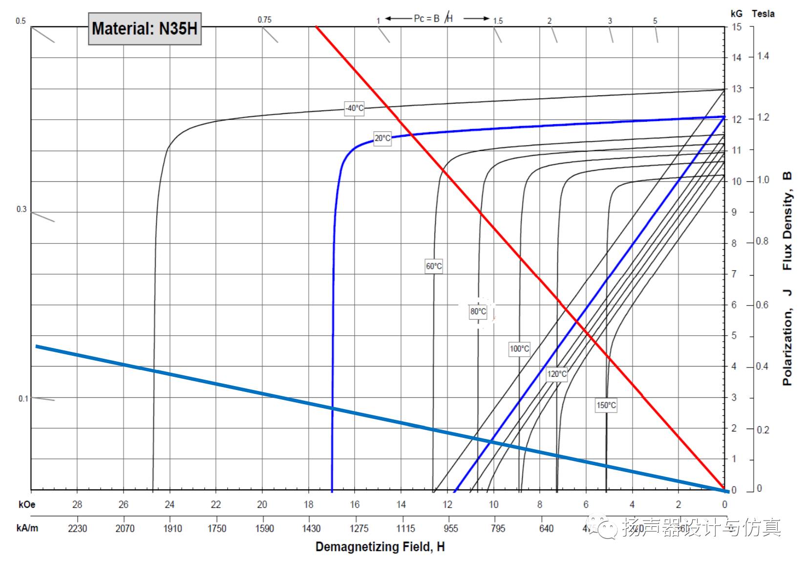首先,很直接的,可以从钕铁硼磁钢供应商处拿到推荐的工作温度范围。比如不同等级磁钢N<=80℃,M<=100℃,H<=120℃,SH<=150℃。但是这只是从矫顽力的角度来看。未考虑实际磁路工作状态的负载。