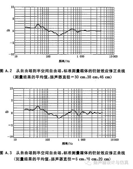 以下是2011年的国标“扬声器主要性能测试方法”中标准测试箱体的衍射修正曲线。