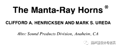 C.R.Hanna, “Theory of the Horn-Type Loud Speaker ”,J. Acoust. Soc. Am.,vol. 2, pp. 150 – 156, 1930, October.