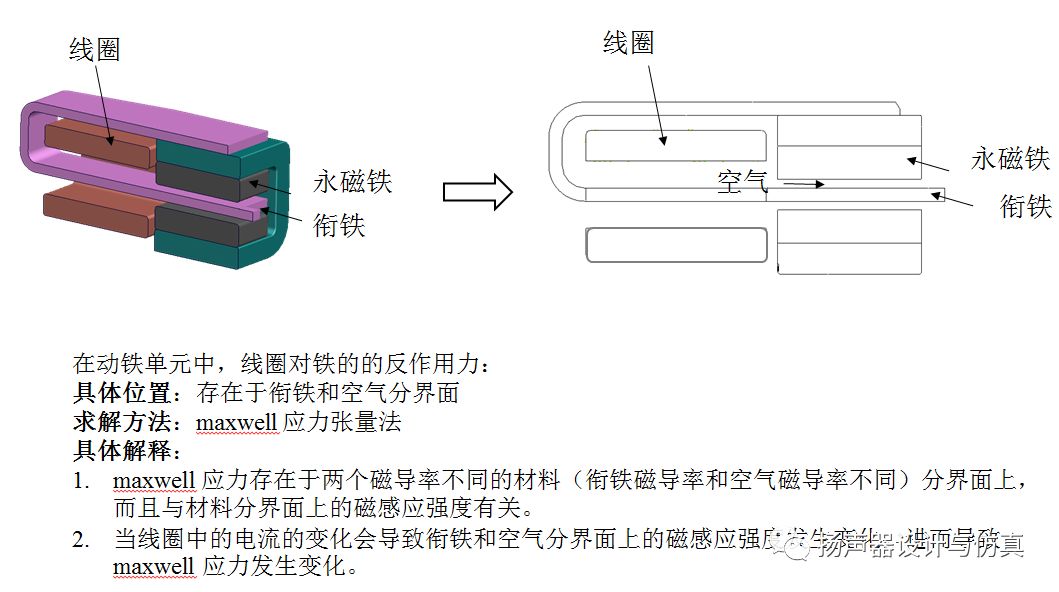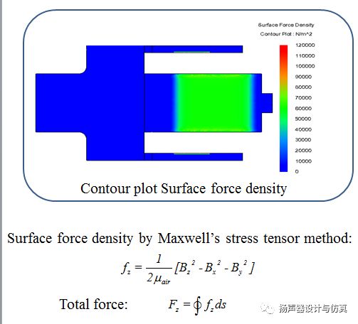 磁路(包括磁钢和铁件)受到的力是和音圈受力BLI大小相等,方向相反的 。音圈对磁路的力不是洛伦兹力,是磁路中极化电流产生的电磁力。可以用麦克斯韦张量积分,另外ansoft还可以用虚功法来求力。虚功力比张量积分求解精度高。