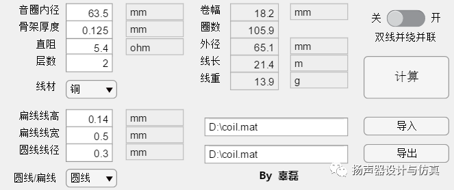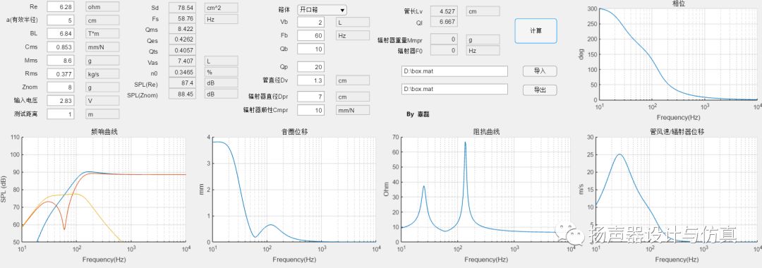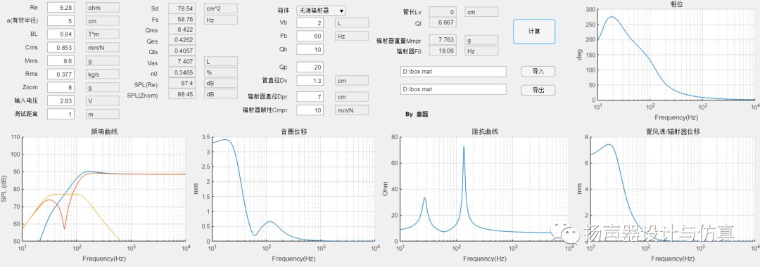 可以计算闭箱,开口箱(倒相箱),无源辐射器的频响/位移/阻抗。
