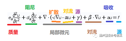 ea是质量系数(简单理解可以认为是质量),da是阻尼系数(简单理解可以认为是阻尼),β是对流系数(代表外场对因变量影响),a是吸收系数,f是源项(可以简单理解为激励)。