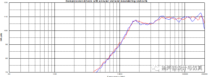 下图蓝色传统圆环状相位塞入口,红色弯曲状相位塞入口。红色的频响曲线明显平滑很多。