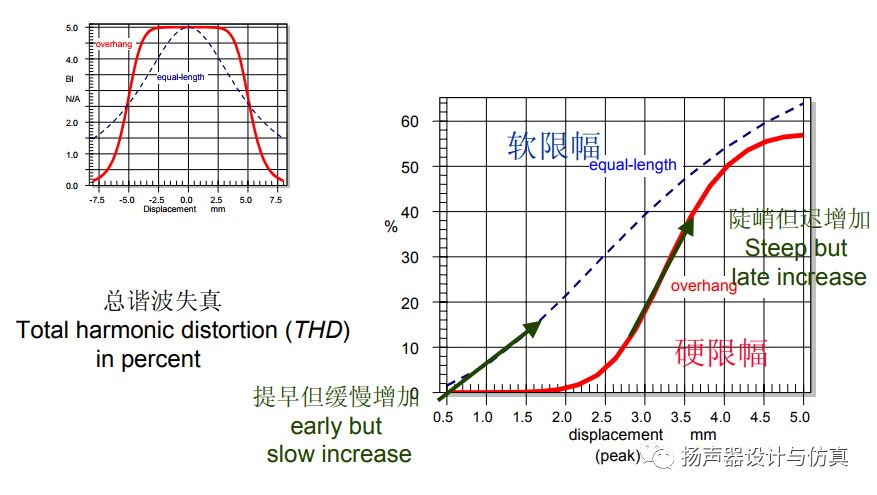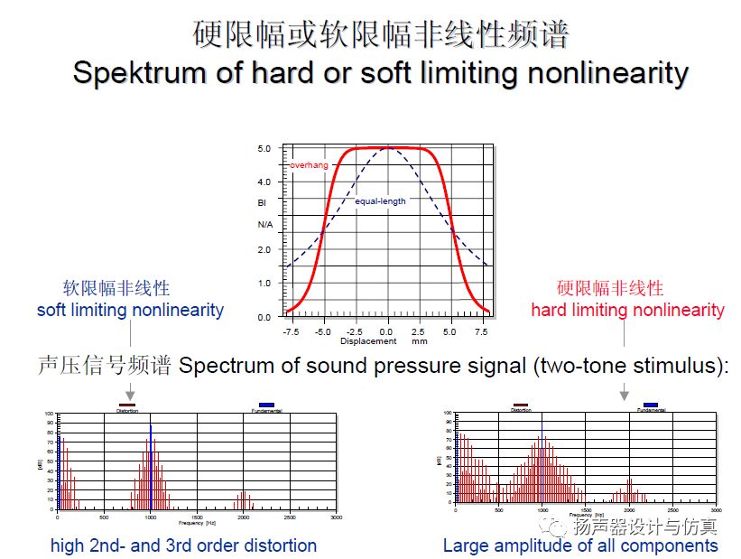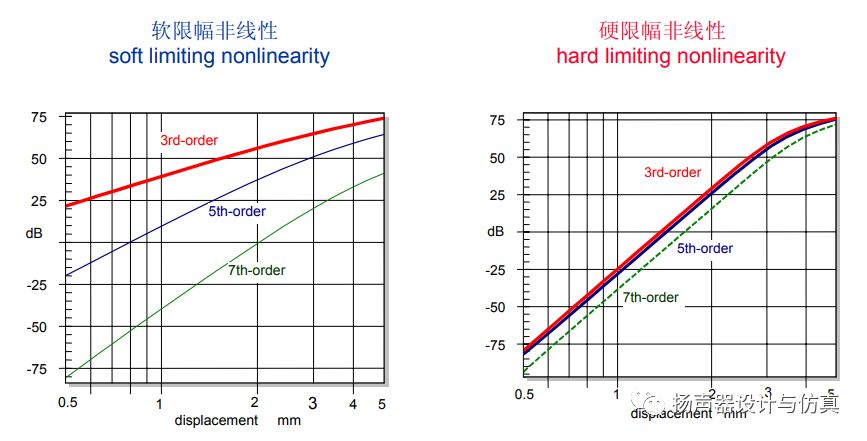 从图中可以看到。位移5mm以下,硬限幅三次谐波失真更高。如果高于5mm,有可能刚好会反过来。