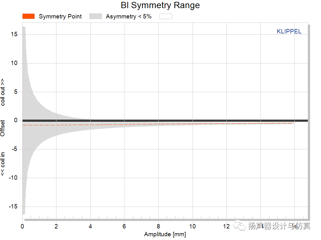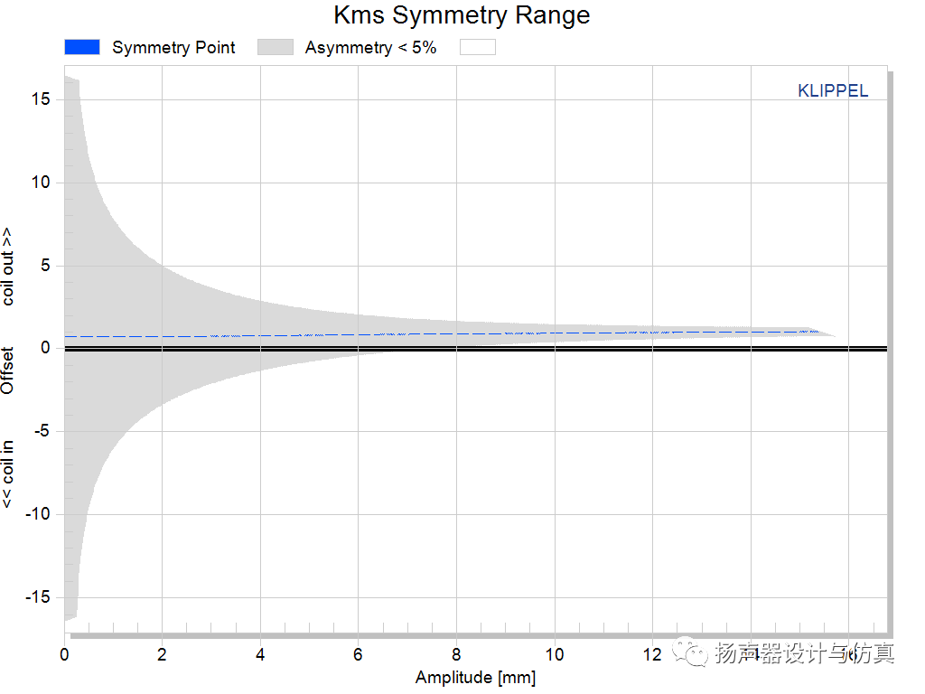 有一款18寸的超低音喇叭测试DIS的时候,发现输入功率较大时,直流偏移异常大,上下的行程非常不对称。出现了输入电压越大,向下的行程越小,甚至根本不会向下运动。