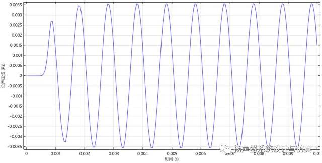 声场中某一点的声压时域曲线。能看到最开始的一个周期是未达到稳定状态的。