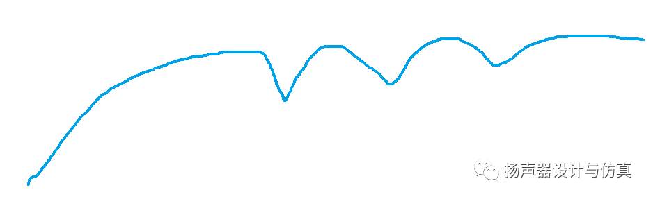 很多时候,有些公司由于条件所限,只能采用房间内测试,或者2pi消音室。一般来说,会把音箱和麦克风都架起来。很容易在某些频率点测到的频响曲线出现很深的谷。类似下图。