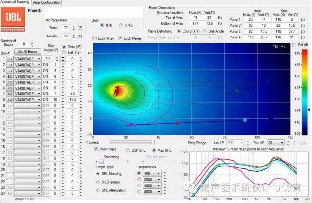 所以一般是采用射线声学的方法来进行计算求解,当然计算精度会比波动压力声学求解差很多。所以这种软件计算的精确度是有疑问的。理所当然还是要以现场实测和实际听音使用为准,不过可以大致指导现场调整方向。