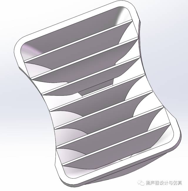 我按照其原理,大致做了个模型,非实际产品。当然不太精准。进行了仿真。直到20kHz都能基本保证出口近似平面波。 从结构上来说,整体高度更短,更精简,部件更少,装配误差的影响更小。 从声学性能上来说,其声学路径也更短更直,不那么扭曲,失真也相对会更低。 生产成本也更低。 唯一缺点就是设计成本会更高,因为不能通用。不同尺寸的系统这个一体化的相位塞波导都需要重新设计。