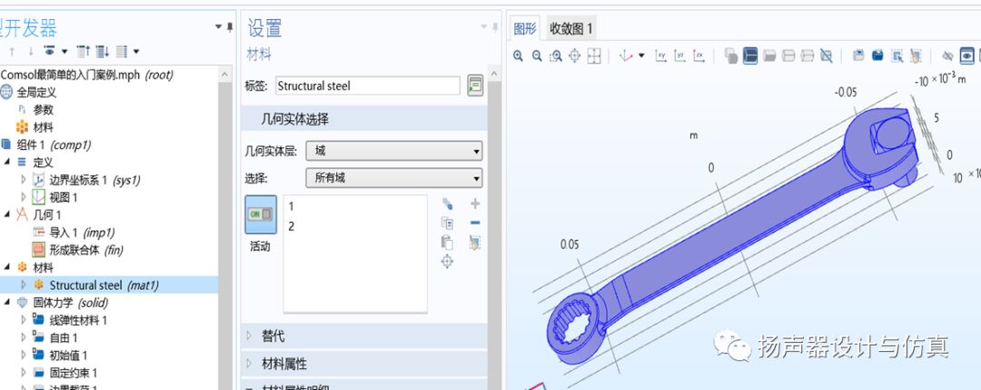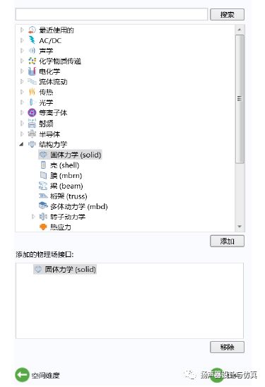 - 首先打开“模型向导”,并添加固体力学物理场选项