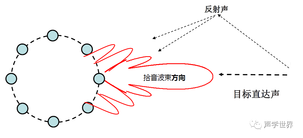 通过波束形成技术,在期望方向上有效地形成一个波束,仅拾取波束内的信号,从而达到同时提取声源和抑制噪声的目的。