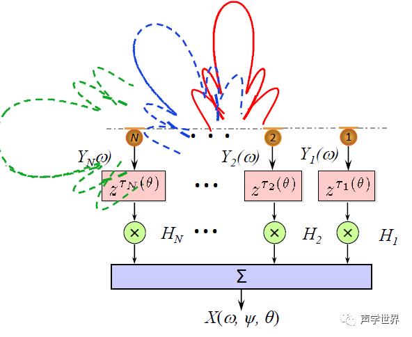阵列的输出是各阵元的加权和