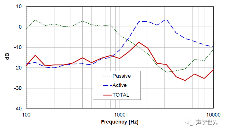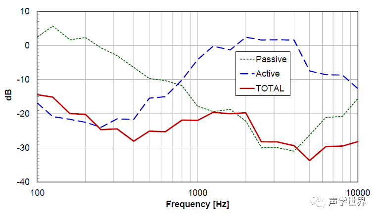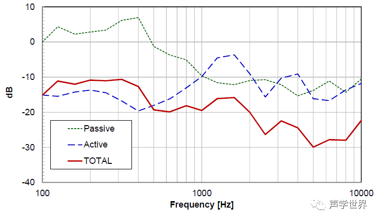 由于被动降噪(无源降噪)在测试过程中一直会存在,所以需要通过从总降噪中减去计算出的被动降噪来计算主动降噪的贡献。