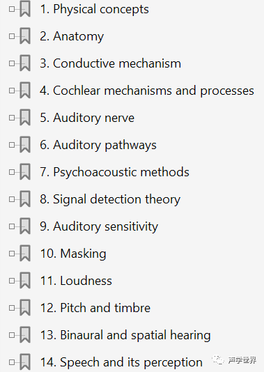 统一介绍了听觉的解剖学,生理学和心理感知。对人听觉的生理和心理来源感兴趣的可以仔细阅读下。相关的参考资料很多,还是非常权威的。