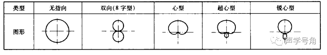 常见的指向性有:无指向(或称全指向),8字型,心型,超心型,锐心型,超指向等。