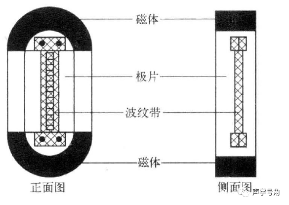 可以看成动圈传声器变形,带状导体即是振膜又是音圈。一般采用铝合金带状振膜,置于磁场之中。