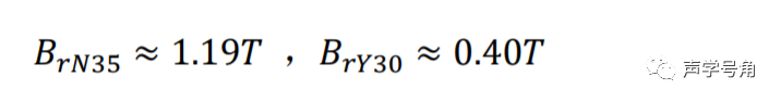 温度也会改变磁钢性能,钕铁硼和铁氧体是扬声器中最常见的两种磁钢材料,其中钕铁硼对温升更加敏感,这是因为这种磁性材料的居里点温度(开始发生永久性退磁的温度)很低。另外,磁钢剩磁Br也和温度相关。对于N35和Y30,当20℃时: