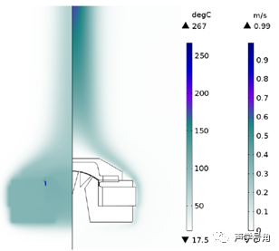 一款压缩驱动单元的温度场仿真分析结果和测量结果取得较好一致。不仅通过流场和温度场的全耦合方法求解自然对流问题,还通过等效换热系数的简化模型来求解,且二者求解结果几乎相同。文中还研究了磁隙中磁通密度随温度的变化,结果表明和文献中所述规律一致。本文所述仿真分析方法可用于实际产品的设计和优化,因为直流电压信号加载已代表了最严重的温升现象(此时扬声器工作效率为0)。另外,当本文中的压缩驱动单元和号角结合使用时,也可(根据本文方法)准确评估其工作效率。对于3D模型或更复杂的模型(例如压缩驱动单元和水平辐射号角结合使用时就无法简化为2D轴对称模型),本文设置方法也同样基本适用,只需在特定边界条件上进行一些微调。