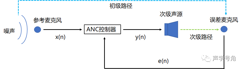 在实际应用中,初级噪声代表原始噪声信号,而次级噪声代表扬声器主动发出的噪声信号,用来抵消原始噪声。