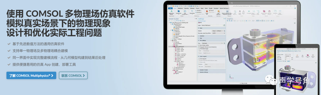 有限元边界元仿真软件很多,如Ansys,Abaqus等。针对电声仿真来说,如果只能推荐一个有限元仿真软件入门的话,我会推荐Comsol Multiphysics。