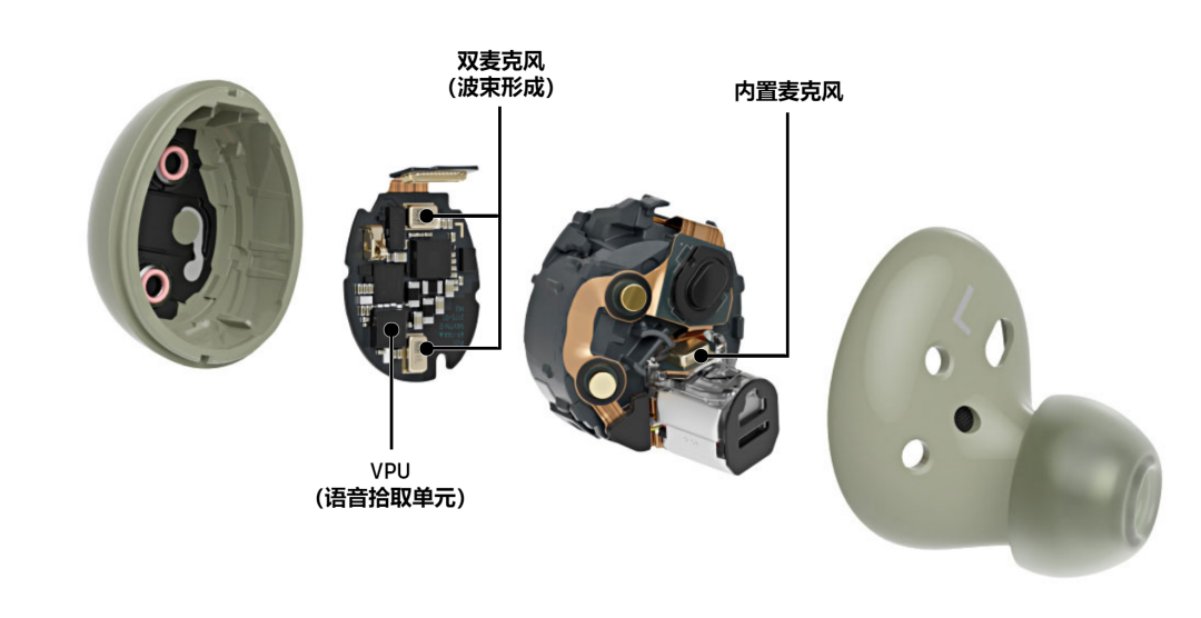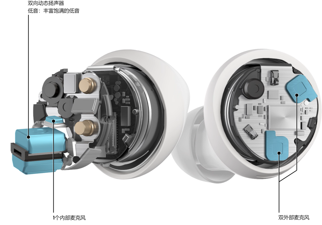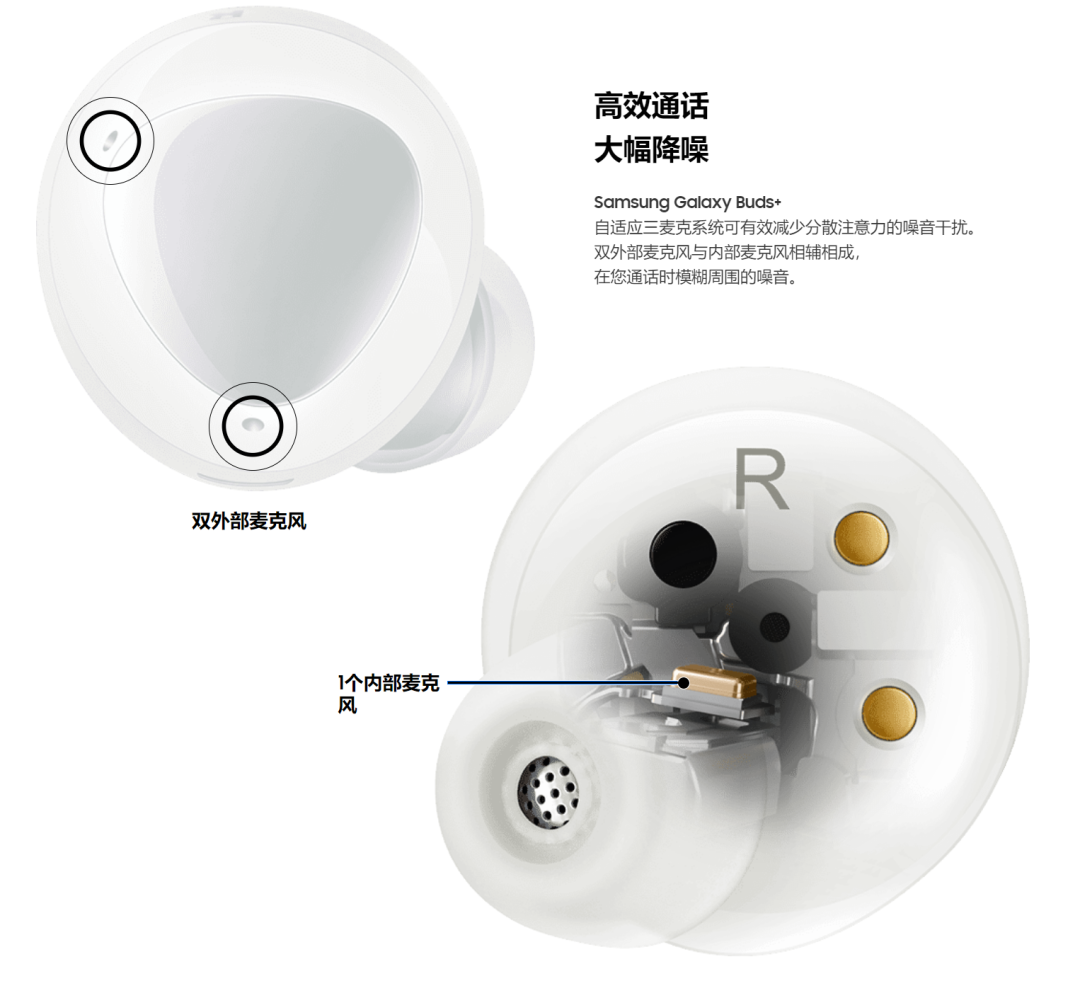 和Galaxy Buds+一样,仍然采用了双扬声器单元的设计,应该还是双动圈扬声器。