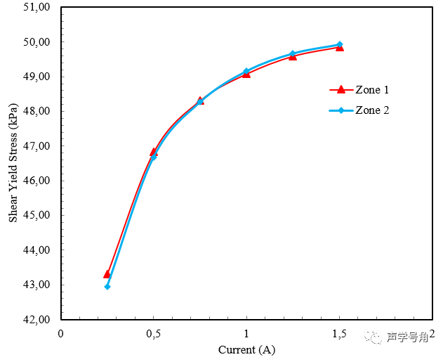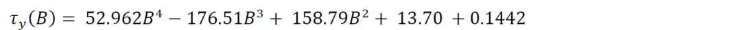 以某一款磁流变液(MRF)为例,通过仿真计算磁感应强度B,再用下面的公式可以转换为磁流变液的剪切屈服应力。