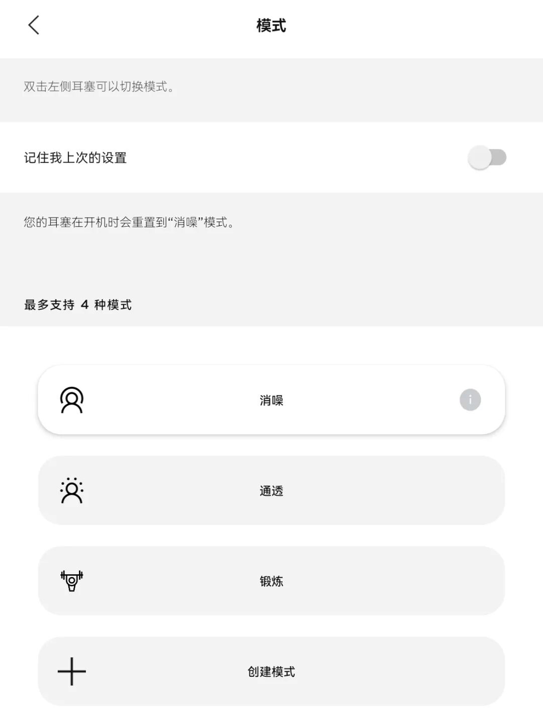 主动降噪的模式可以按4种场景来切换模式,而不是直接技术性地用降噪等级,便于理解和使用。
