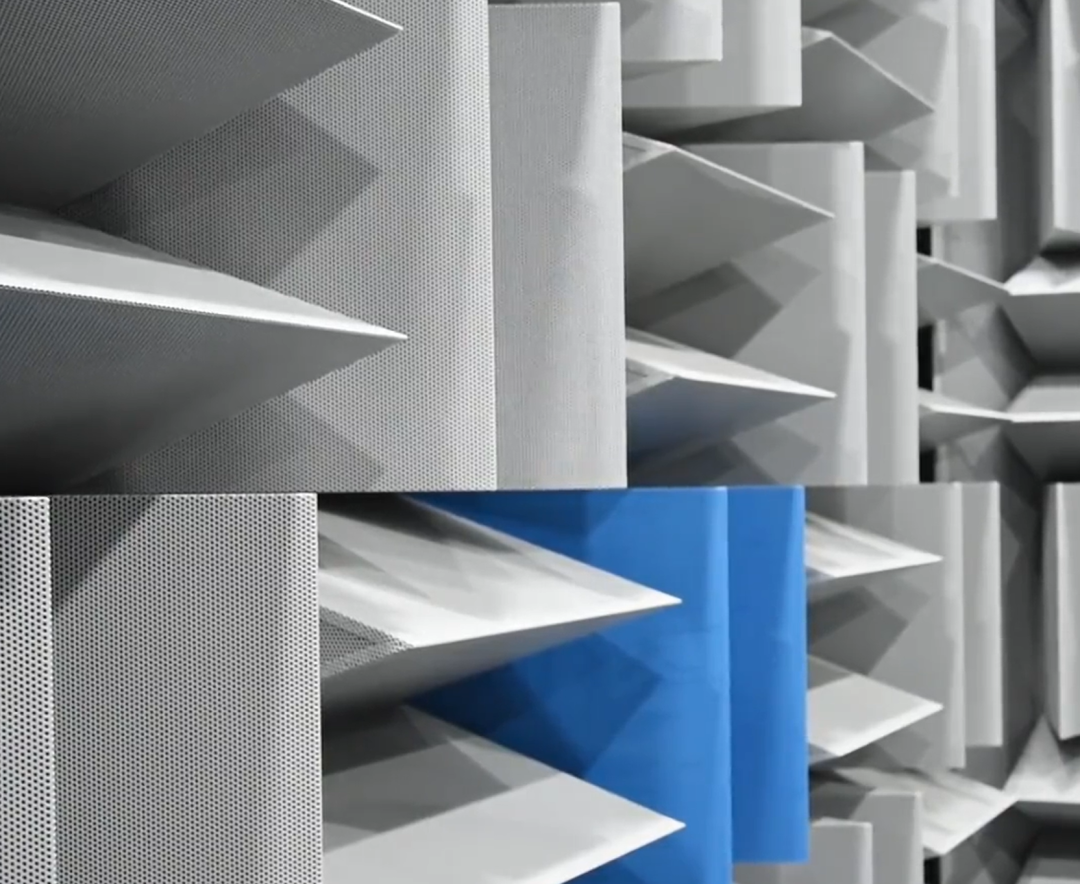 在各种消声室中,基本上我们都可以在天花板、地面、墙面发现挂装着长长的尖劈状吸声体。因为吸声尖劈具备优良的吸声性能,从而被普遍采用。