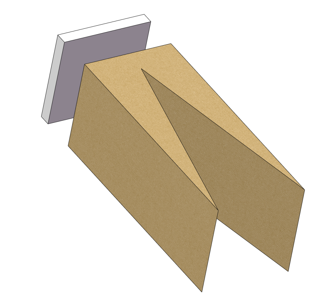 下图是简要的一个吸声尖劈的3d图示,灰色代表墙面,米色代表吸声尖劈。