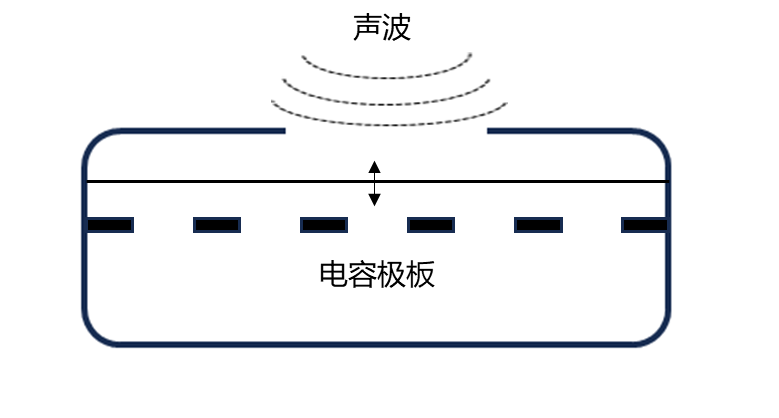 •膜到背板的确切距离取决于麦克风的偏置状态。当麦克风通入直流偏置电压时,膜和背板之间存在静电力,导致膜向下移动。