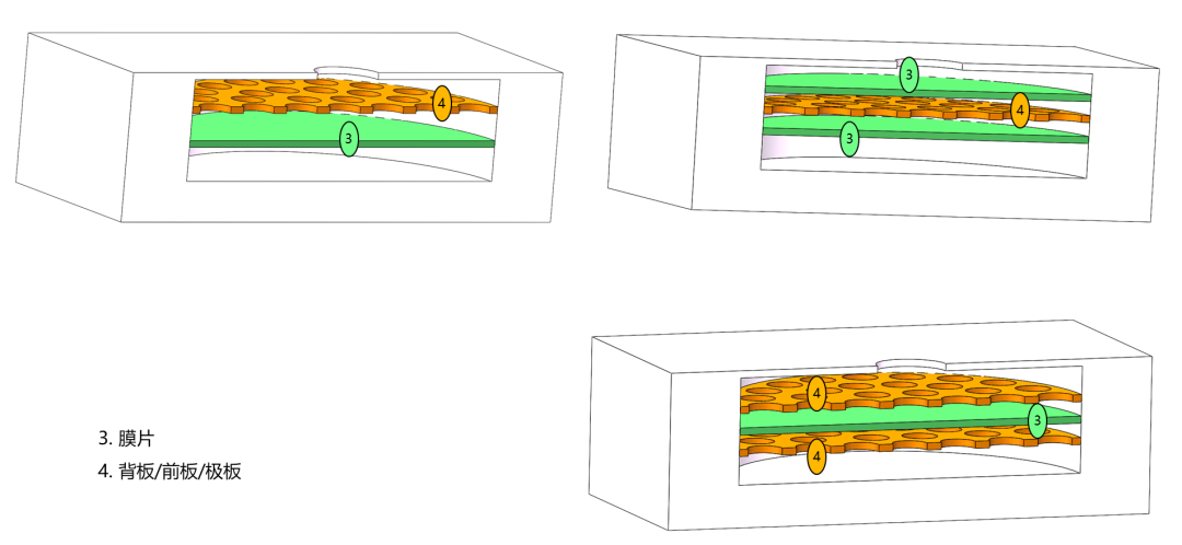 •单个孔的面积、孔距、孔数量、板厚都会影响麦克风的性能