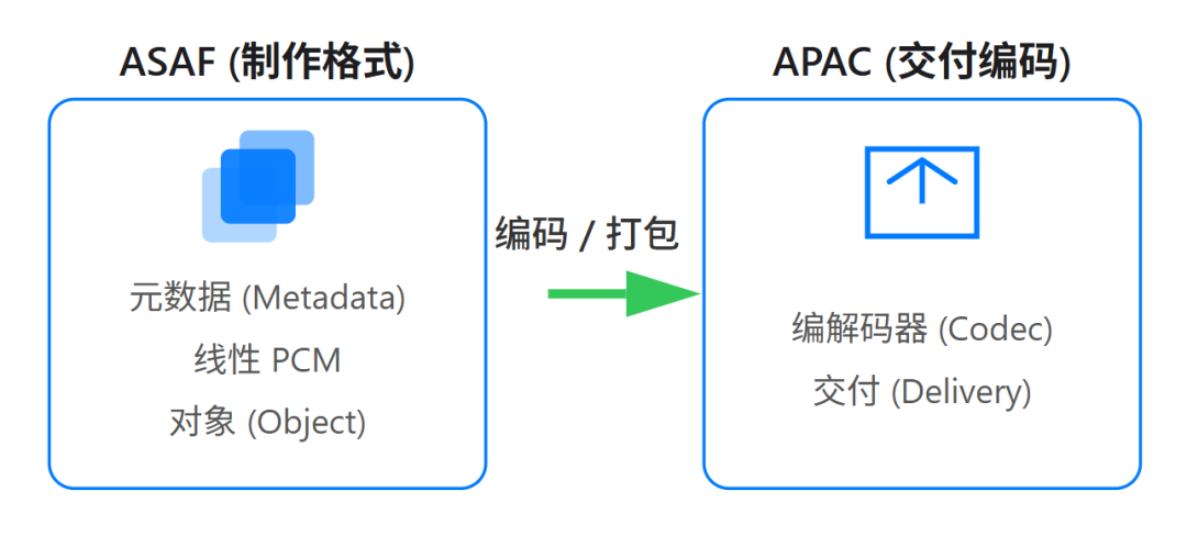 - APAC (Apple Positional Audio Codec - 苹果位置音频编解码器): 这是与之配套的交付编码格式,是承载 ASAF “蓝图”的卡车。它负责高效地压缩这些复杂的音频数据以便传输和存储。值得注意的是,APAC 也可以作为杜比全景声(Dolby Atmos)数据的容器,这显示了苹果在过渡时期的兼容策略。