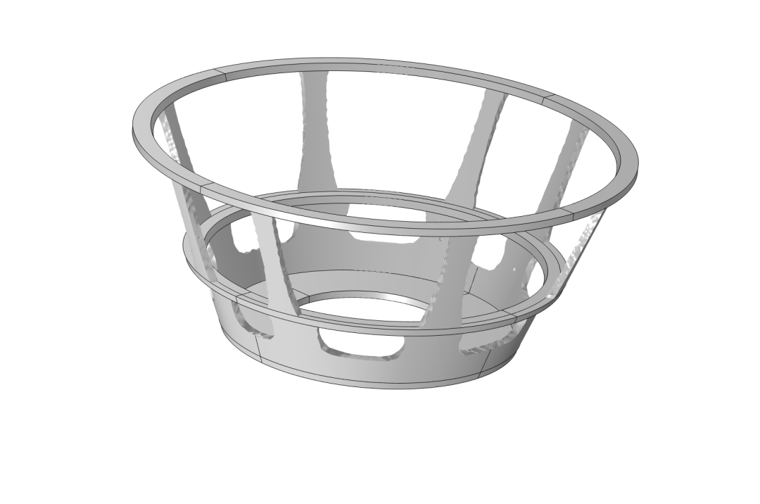 首先,在COMSOL中建立一个简单的几何模型,区分出必须保留的非设计域(如安装法兰边)和可以优化的设计域。然后,施加固定约束,模拟盆架的实际安装状态。