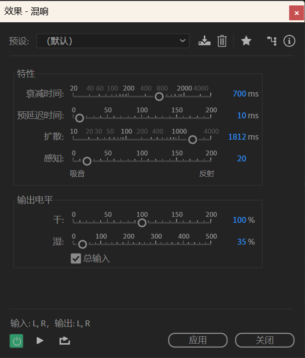 • 人工混响 (Reverb):混响效果器则更为复杂和精妙。它的目标是模拟特定声学环境,为“干”的音轨(如在吸声良好的录音棚里录制的人声)赋予空间感和融合度。无论是模拟明亮的“房间 (Room)”、温暖的“音乐厅 (Hall)”还是复古的“板式 (Plate)”混响,恰当的Reverb能让声音听起来更自然、更平滑、更具沉浸感。它能将多个独立的音轨“粘合”在一起,仿佛它们本就同处于一个真实空间。