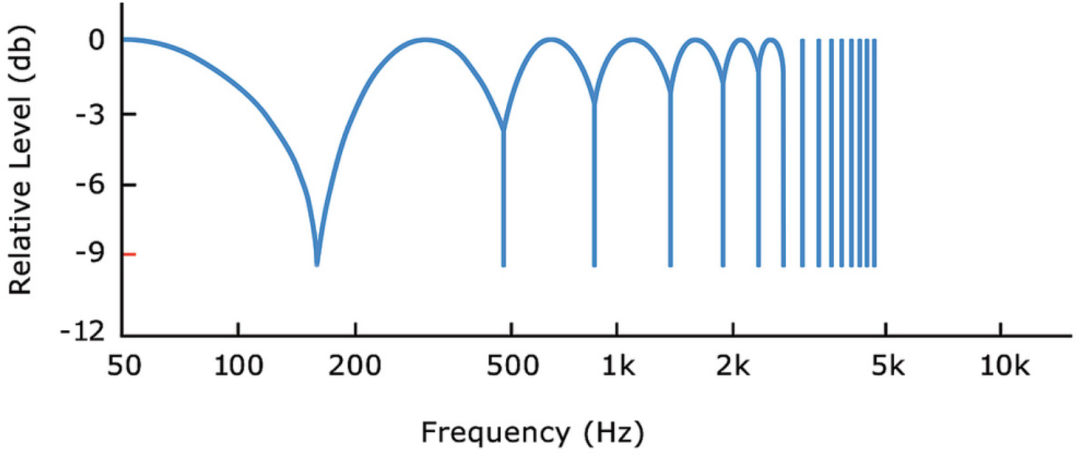 这种干涉效应反映在频率响应上,就是一条布满尖锐“波谷”的曲线,看起来像一把梳子,因此得名“梳状滤波” (Comb Filtering)。它像一个诅咒,让听众听到的声音变得支离破碎、面目全非,无论音箱本身多么优秀,都无济于事。